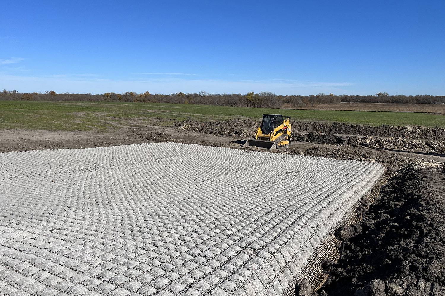 This case study showcases the advantages of using Flexamat concrete block matting as an alternative to riprap for low water crossings and adjacent slopes on a solar farm in Central Texas. The project’s goals were to mitigate erosion through stabilization and reinforcement, while minimizing environmental impact, speeding up construction and reducing costs. This project had several areas of concern from an erosion perspective, and generally speaking, low water crossings are prone to significant erosion due to the combination of truck traffic and the potential of heavy rainfall creating high-velocity flows. Riprap was not ideal because of its costly and time-consuming installation and the long haul from the quarry.