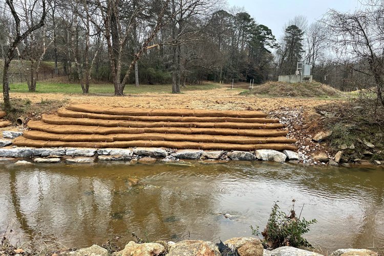 Hanes Geo coir matting is manufactured using high strength coir twine, which results in a semi-permanent erosion and sediment control product. It’s used for stream bank and channel restorations or temporary sediment pond baffles. We also offer coir logs in various dimensions.