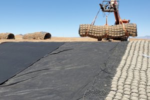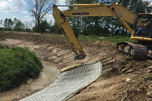Flexamat is a vegetated tied concrete block mat utilized for stabilizing slopes, channels, low water crossings, inlet/outlet protection, and shorelines. Due to superior installation speed, vegetation, performance, and cost, it is often preferred to rock rip rap, poured concrete, articulated concrete block mats (ACBs), gabion mattresses, or other hard armor erosion solutions.