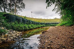 SCOURLOK® is a robust engineered bank stabilization system designed to resist extreme hydraulic stresses and protect shorelines and embankments while promoting vegetation. It was developed for applications that need below water scour protection in addition to slope stabilization and erosion control provided by ARMORMAX® and PYRAMAT® engineered earth armoring solutions.