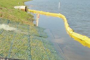 Turbidity barriers restrict sedimentation created by construction operations adjacent to bodies of water. Hanes Geo offers a wide variety of impermeable and permeable barriers that meet or exceed DOT and other environmental requirements. Barrier depth and length can be customized for most site conditions and project specifications.
